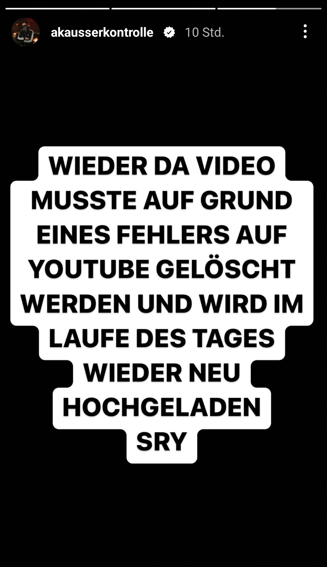 „‚Wieder da‘-Video musste auf Grund eines Fehlers auf YouTube gelöscht werden und wird im Laufe des Tages wieder neu hochgeladen. Sorry“