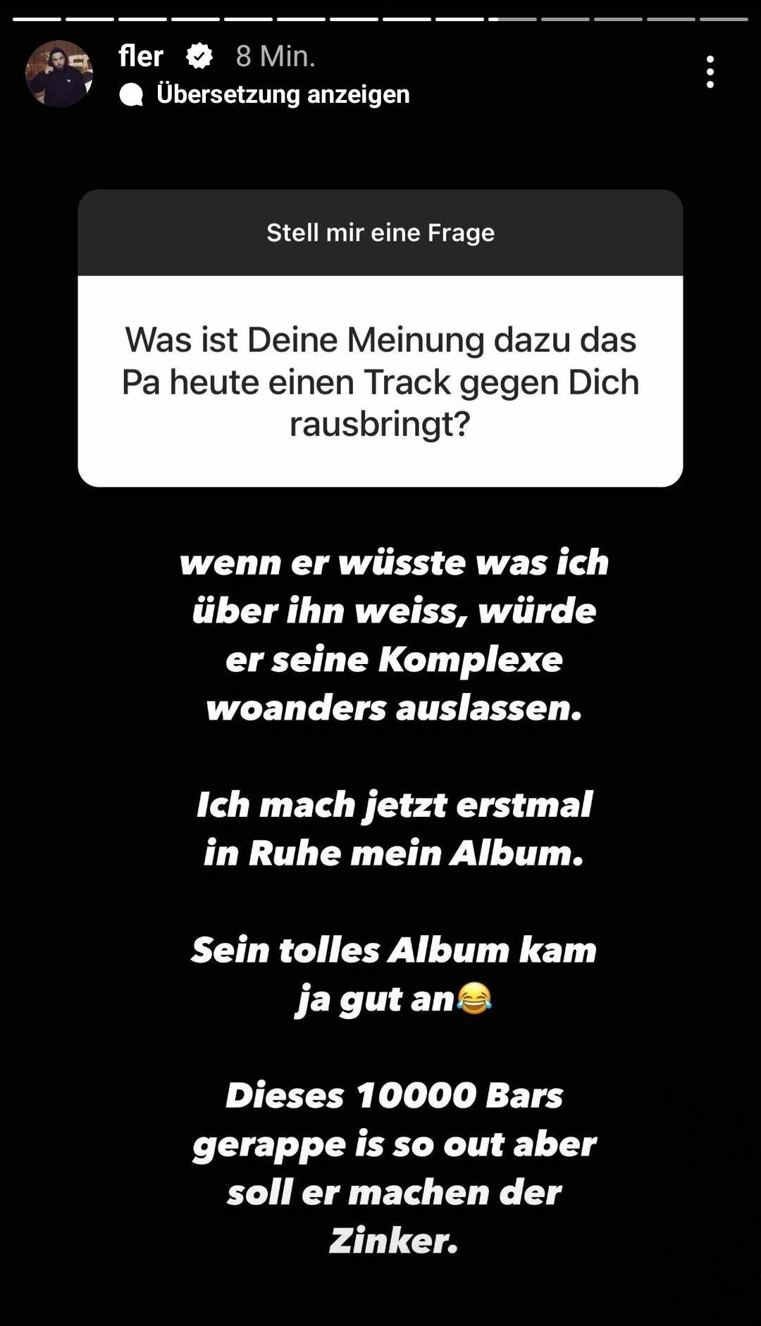 Im Rahmen einer Fragerunde erkundigt sich ein User, was Fler davon hält, dass PA Sports heute angeblich einen 150 Bars-Diss gegen ihn rausbringt.
