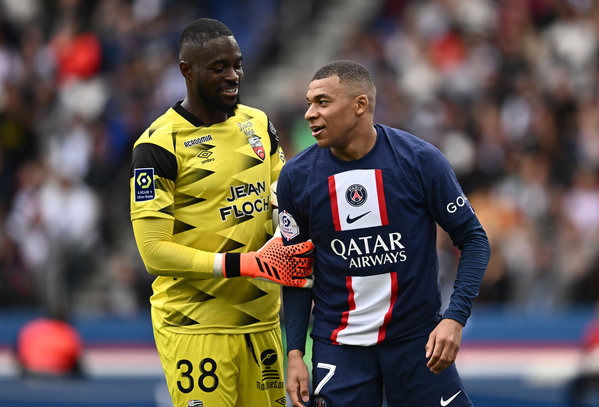 Weil Lorient-Keeper Yvon Mvogo denkt, dass der Schiedsrichter einen Freistoß gepfiffen hat, legt er den Ball vor sich hin und wartet.