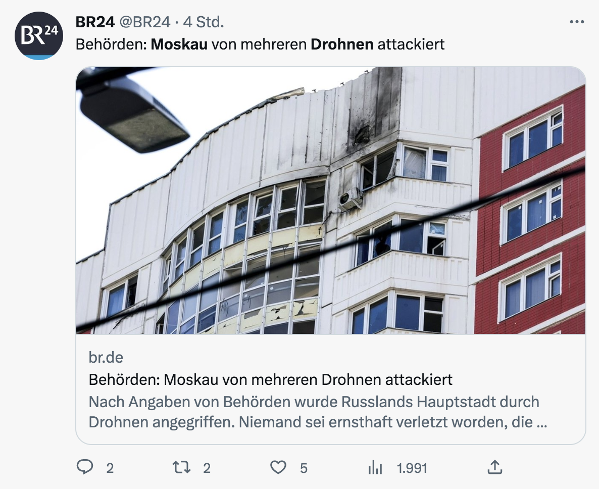 Es passiert nur 10 Minuten entfernt von der Residenz des russischen Präsidenten in Moskau. Die Luftwaffe schießt 3 feindliche Drohnen ab!