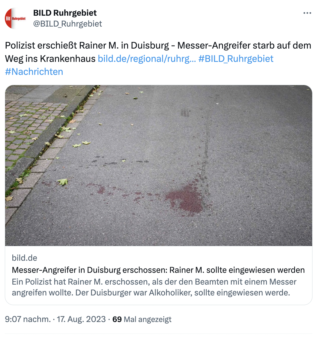 Es passiert am Donnerstag Nachmittag im Treppenhaus eines Mehrfamilienhauses. Ein Mann geht mit Messer auf Polizisten los! Dann fallen Schüsse…