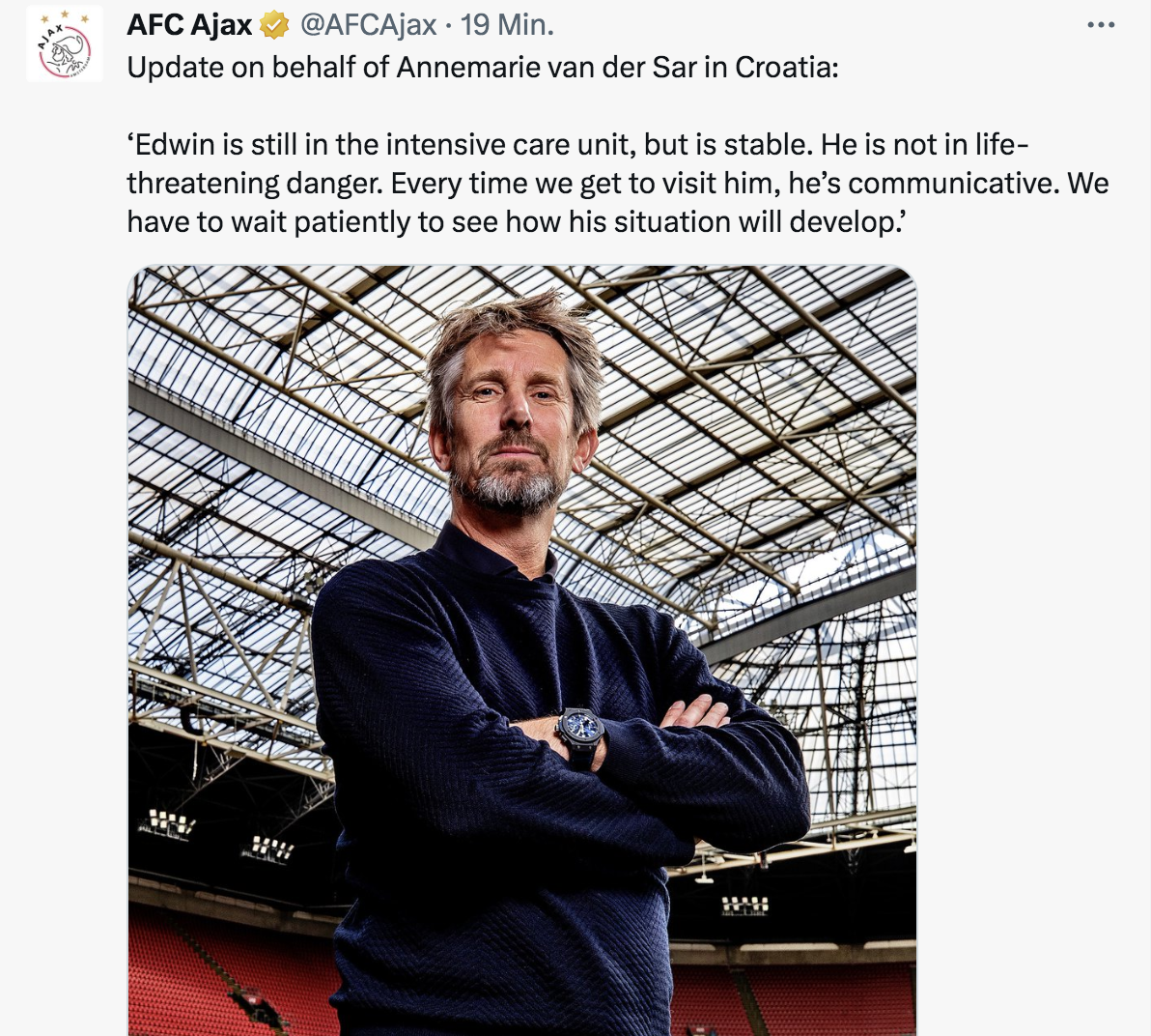 Am Freitag macht es sein Ex-Verein Ajax öffentlich: Torwart-Legende Edwin van der Sar hatte eine Hirnblutung, er liegt auf der Intensiv-Station! Jetzt gibt es gute News…