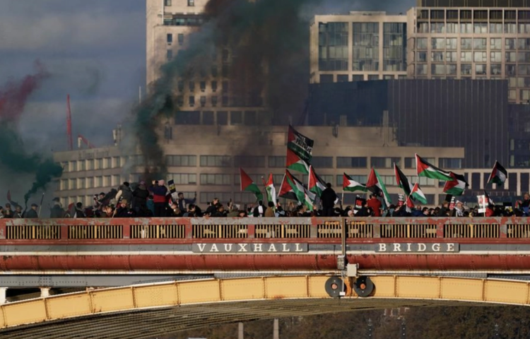 Die Menge zog vom zentralen Hyde Park über die Vauxhall-Brücke zur US-Botschaft an der Themse.