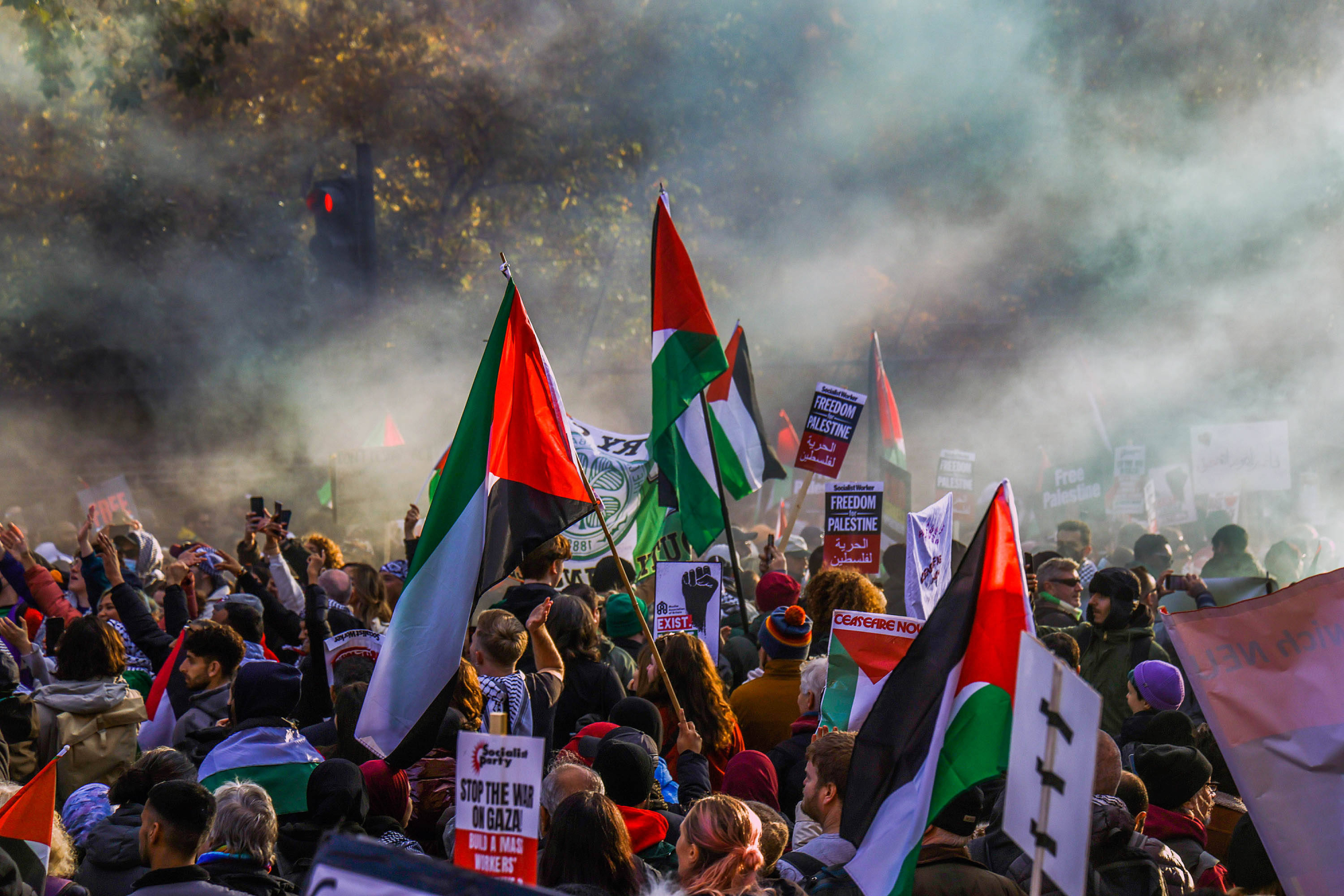 Etwa 300.000 Menschen haben sich am Samstag in London an einer Pro-Palästina-Großdemonstration beteiligt.