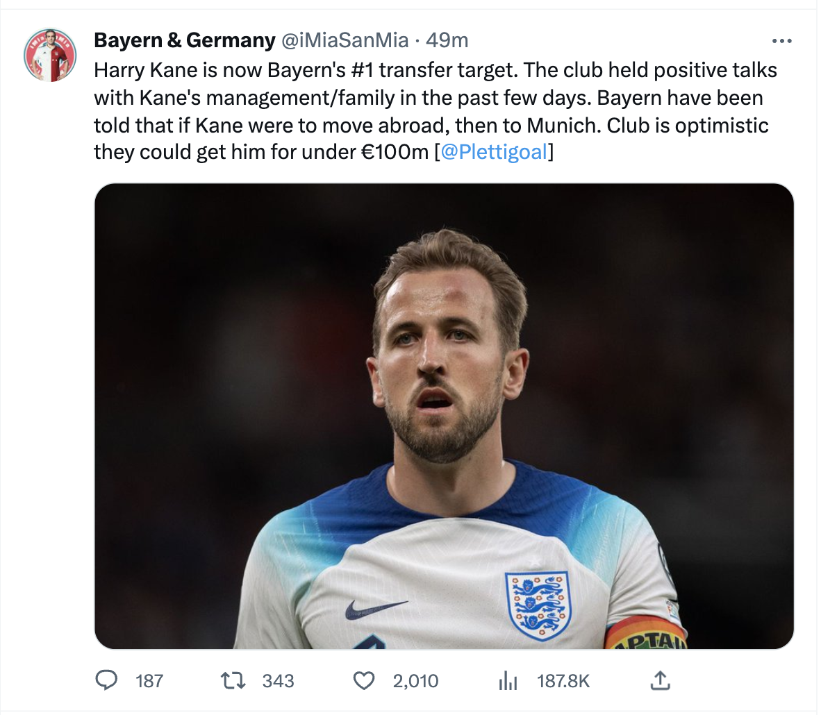 Bayern ist nun optimistisch, dass man Kane für unter 100 Millionen Euro verpflichten kann.