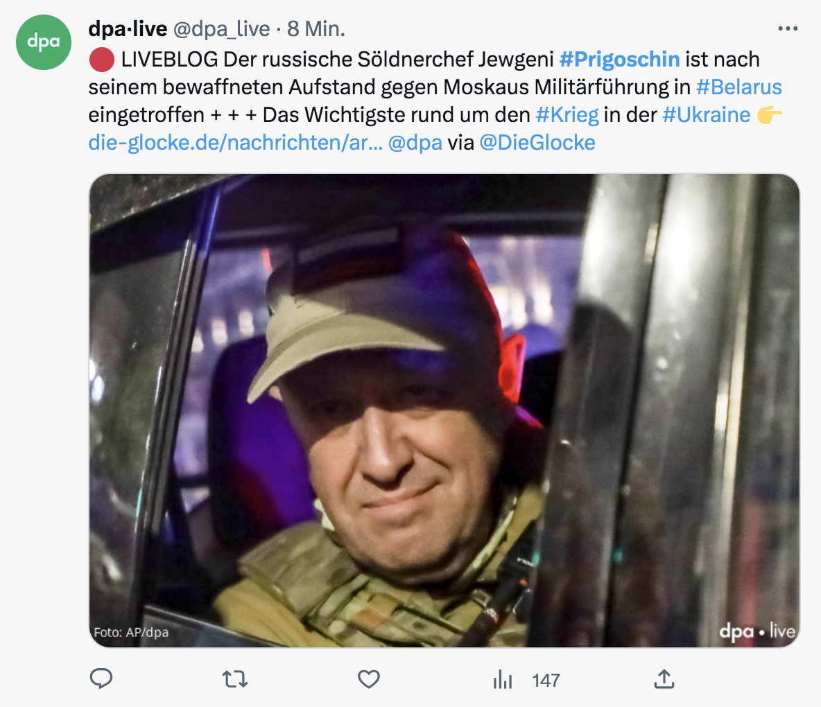 Jetzt ist Prigoschin in Belarus angekommen.