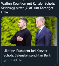 Weitere folgen im Laufe des Tages. Dort will Selenskyj nach eigener Aussage das Thema Kampf-Jets ansprechen.