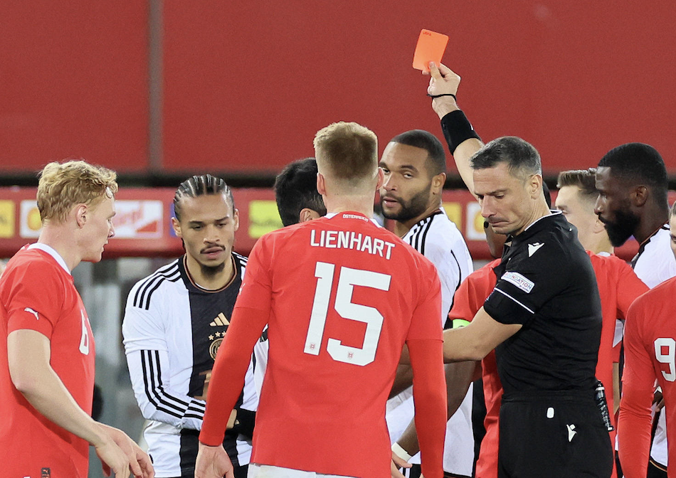 Er verliert völlig die Nerven im Match gegen Österreich (0:2). Tätlichkeit, Rote Karte! Doch direkt danach entschuldigt sich Leroy Sane…