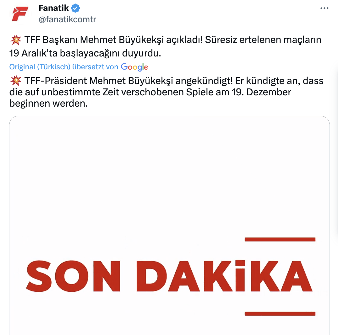 Ab 19. Dezember finden wieder Spiele in allen Ligen statt! Es ist der 17. Spieltag in der Süper Lig.