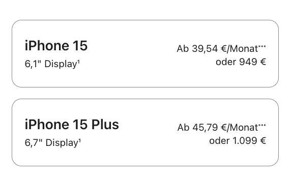 Für das größere iPhone 15 Plus hingegen sind 1.099 Euro fällig.