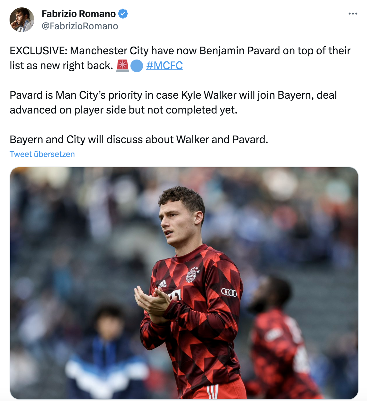 Der FC Bayern ist bereit Pavard zu verkaufen, um ihn nächstes Jahr nicht ablösefrei zu verlieren.