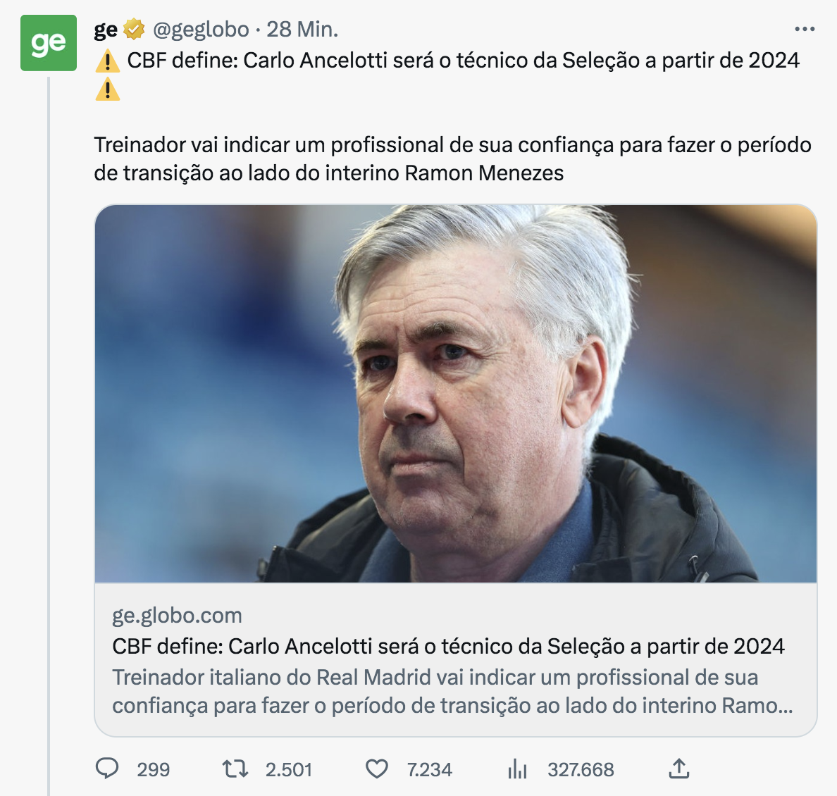 Soeben kommt die Nachricht beim größten TV-Sender des Landes. Die wichtigste Trainer-Entscheidung ist gefallen, Carlo Ancelotti macht den Job!