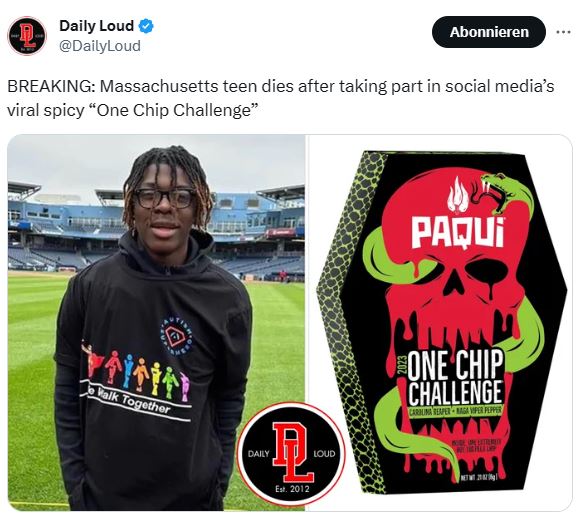 Die One-Chip-Challenge ist auch unter deutschen Streamern sehr beliebt. In den USA kostet der Internet-Trend einen Teenager das Leben.