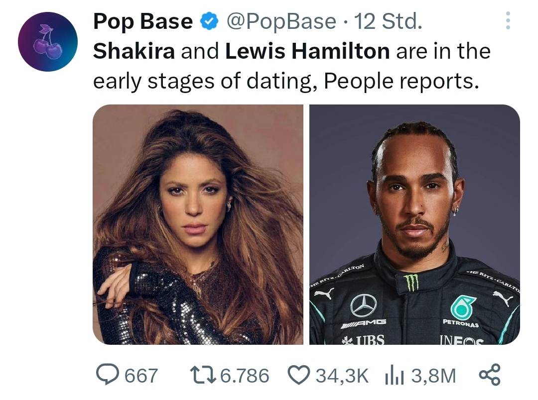 Das „People“-Magazin aus den USA verkündet es: Shakira und Lewis Hamilton sind dabei sich kennen zu lernen.