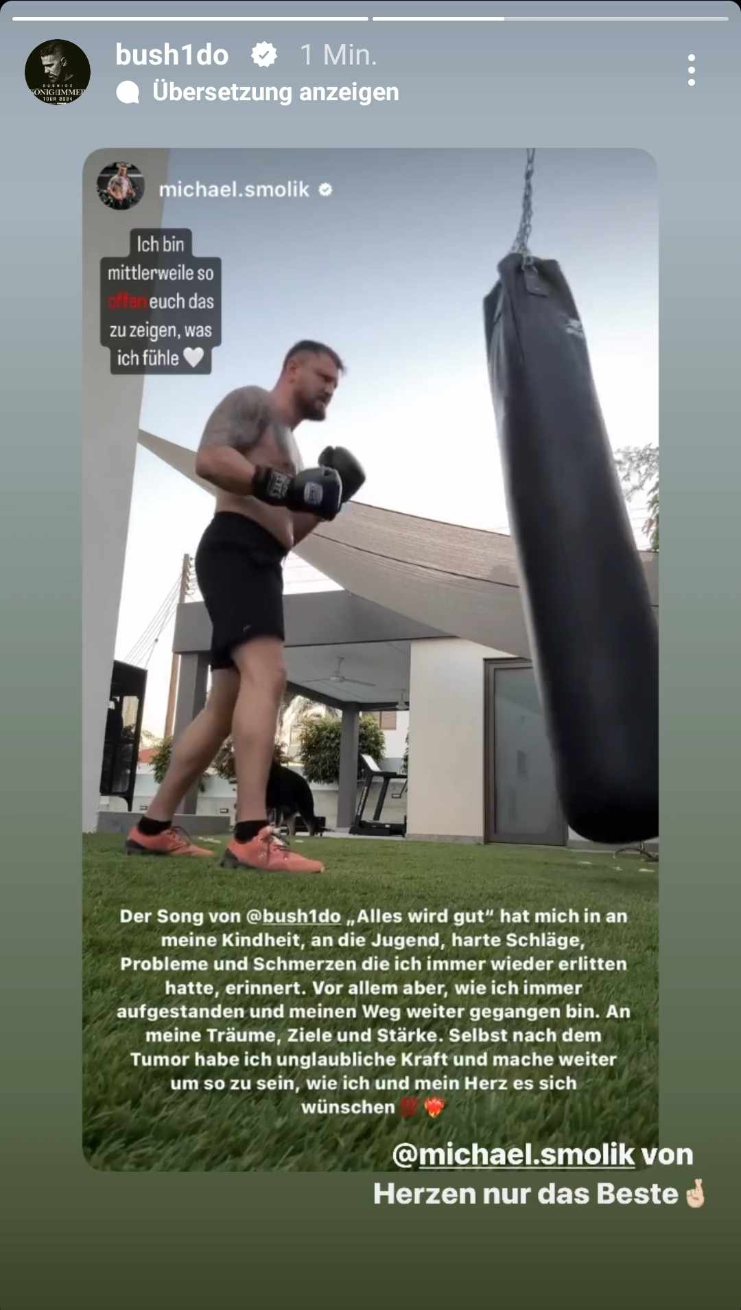 Mittlerweile hat er ihn operativ entfernen lassen und trainiert schon wieder. Auf Instagram gibt es nun liebe Worte an Bushido!