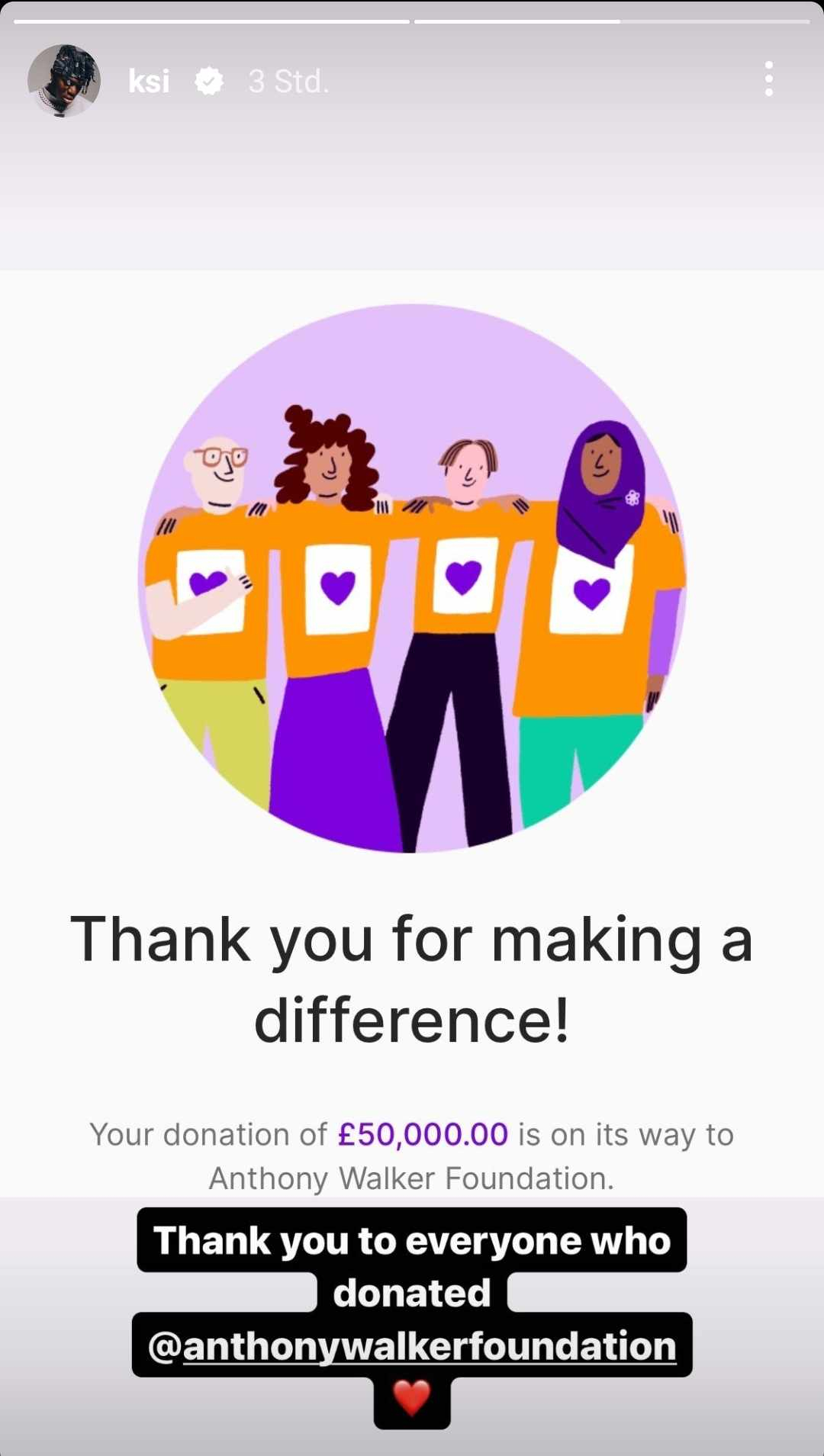 Jetzt zeigt KSI, dass er selbst noch mal 50.000 Pfund (58.000 Euro) gespendet hat. Definitiv eine coole Aktion des YouTube-Superstars!
