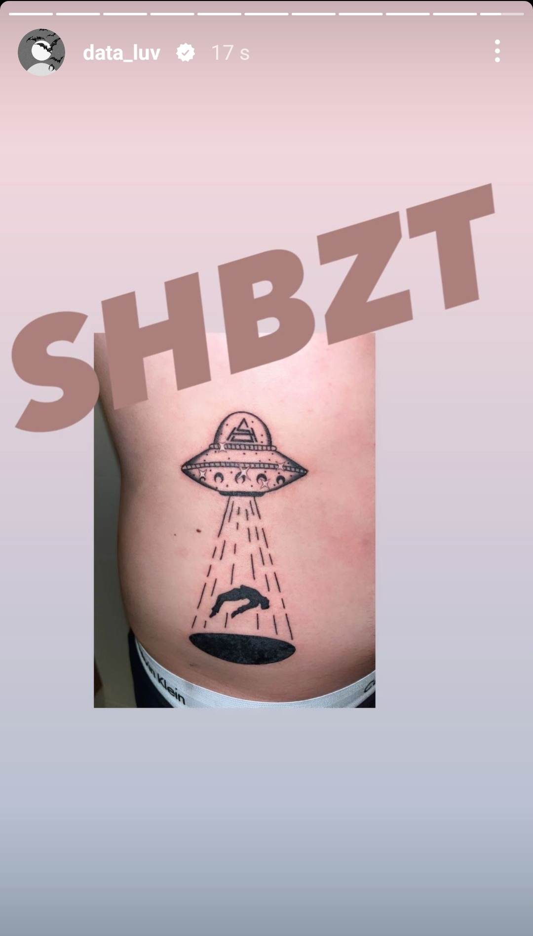 In seiner Instagram-Story zeigt Data Luv, dass er ein neues Tattoo auf seinem Bauch hat. Ein Ufo mit dem Stay High-Logo, welches gerade einen Menschen aufsaugt.