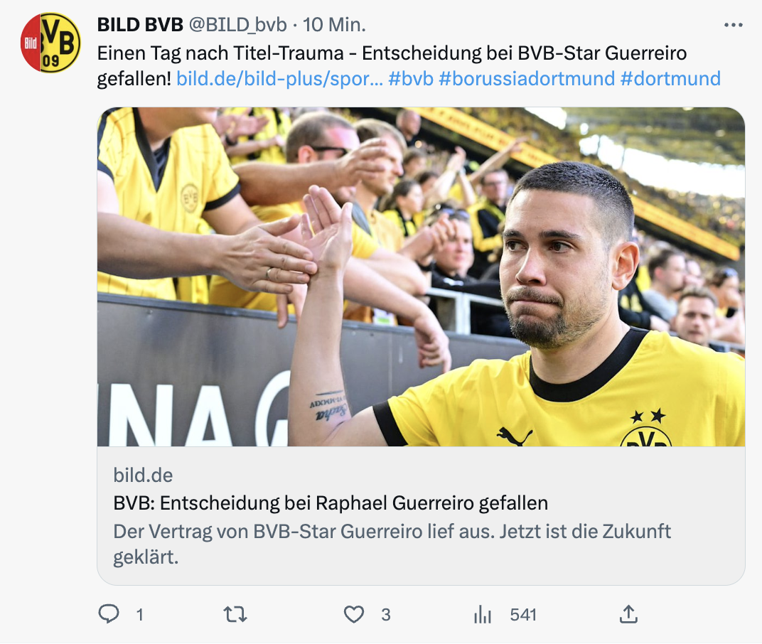 Der Vertrag des 29-Jährigen läuft aus, ein Angebot zur Verlängerung lehnte Guerreiro ab.