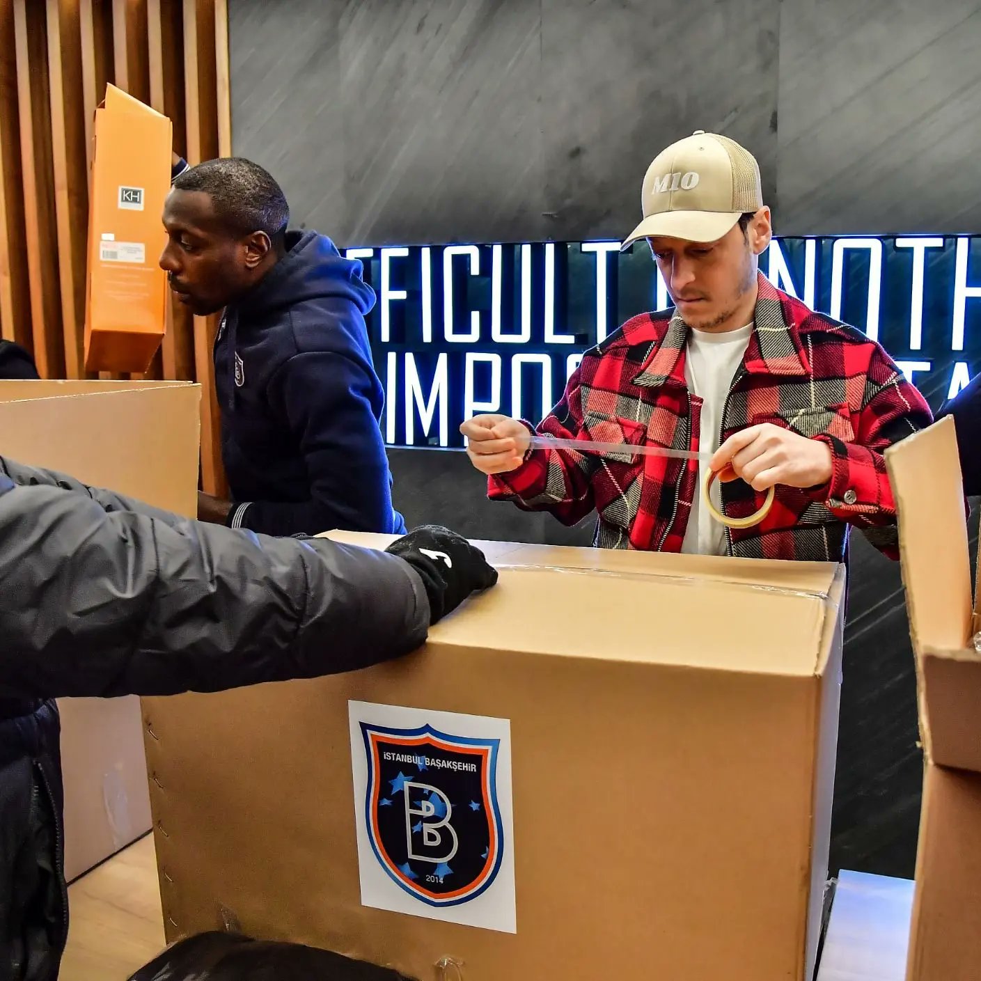 Futbolcularımız, yardım malzemelerinin kolilenmesinde yardımcı oluyorlar. pic.twitter.com/xUwssgfq19