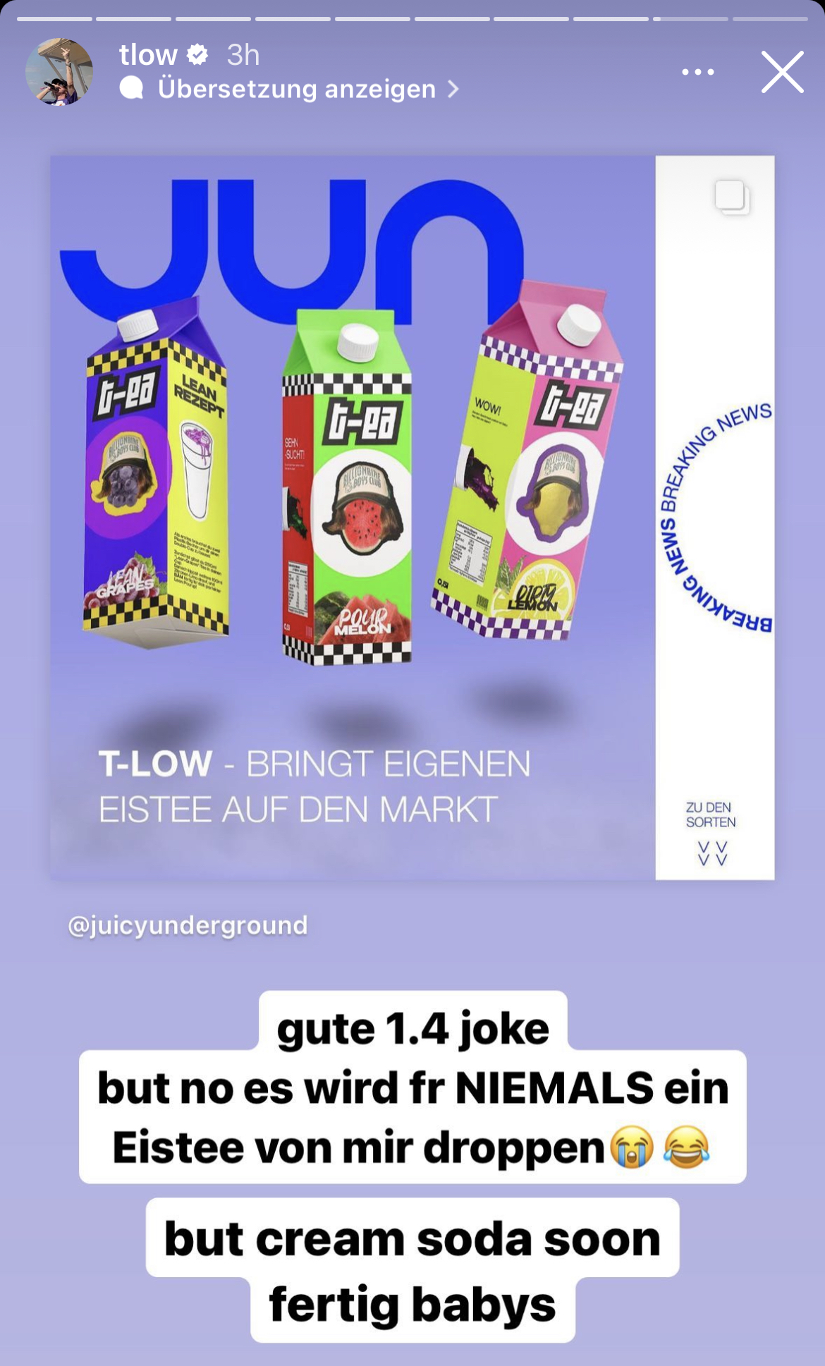 „Es wird for real NIEMALS ein Eistee von mir droppen. Aber Cream Soda ist bald fertig, Babys“