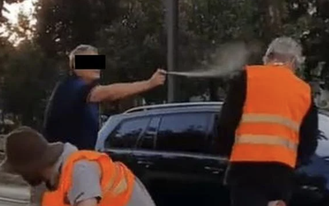 Ein Autofahrer steigt aus seinem Auto – und sprüht mehreren Aktivisten mit Pfefferspray voll ins Gesicht!