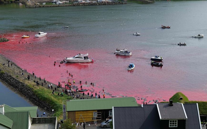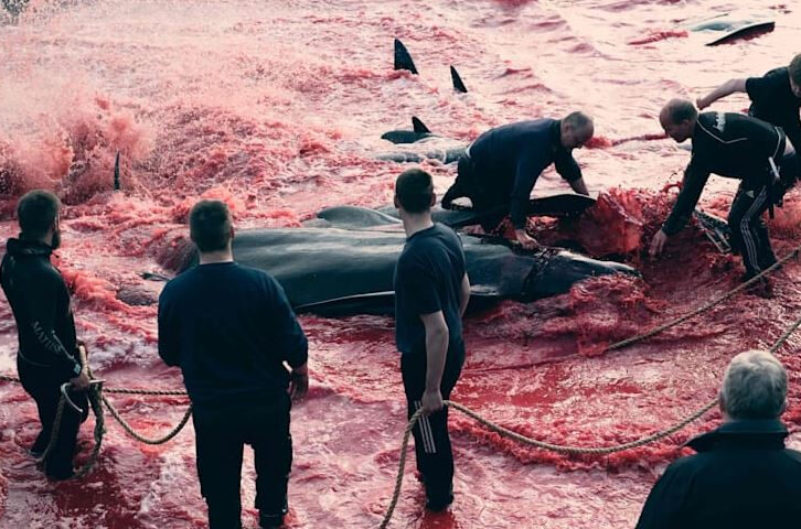 Blutiges Massaker vor der Küste der Färöer-Inseln. Die Einwohner töten hunderte Grindwale, weil es eine jahrhunderte lange Tradition ist.