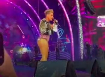 Pink fragt, ob es sich dabei um die Asche seiner toten Mutter handelt. Der Festival-Besucher bejaht dies offenbar.