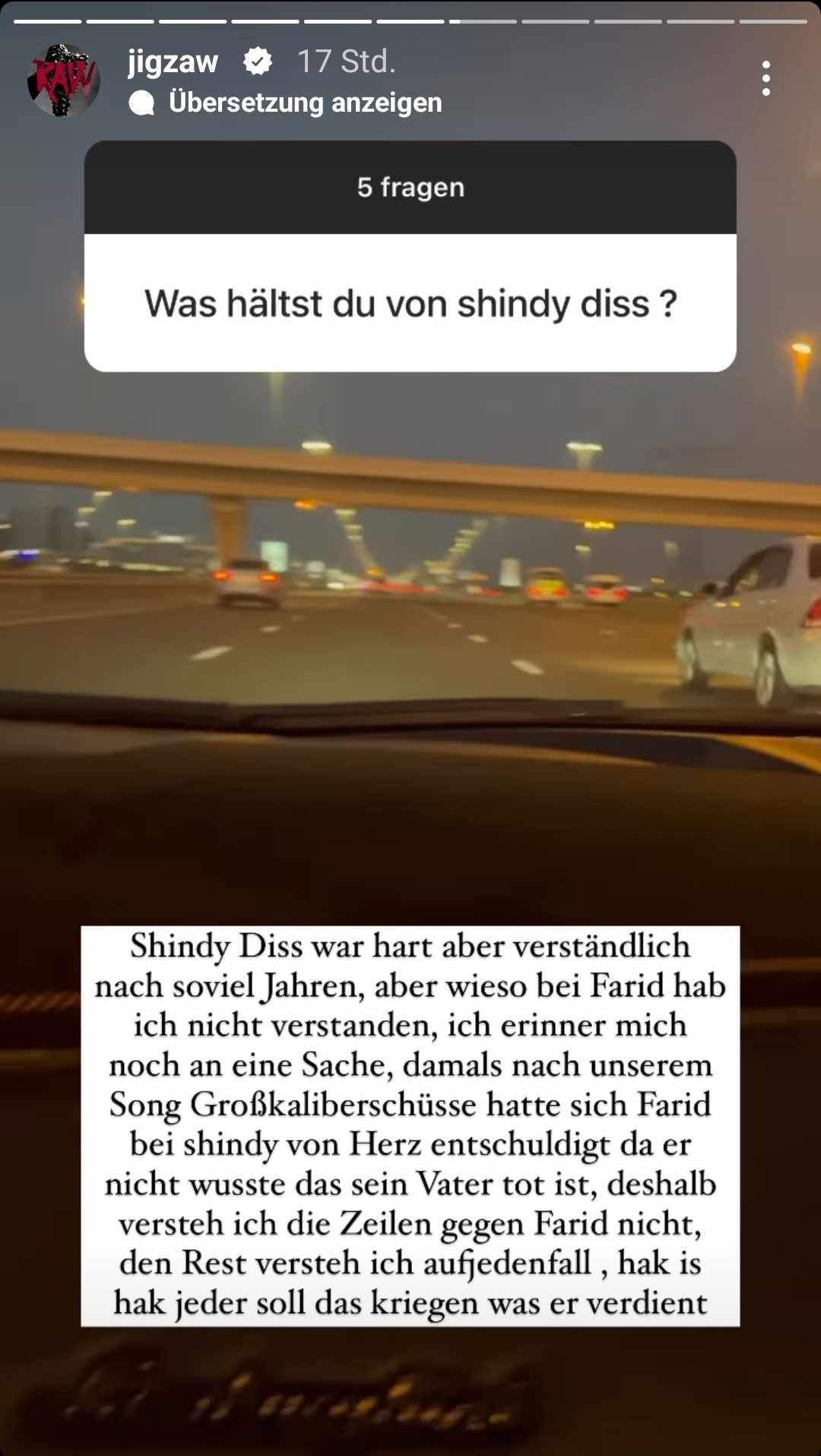 „Shindy-Diss war hart, aber verständlich nach so vielen Jahren, aber wieso bei Farid? Habe ich nicht verstanden.