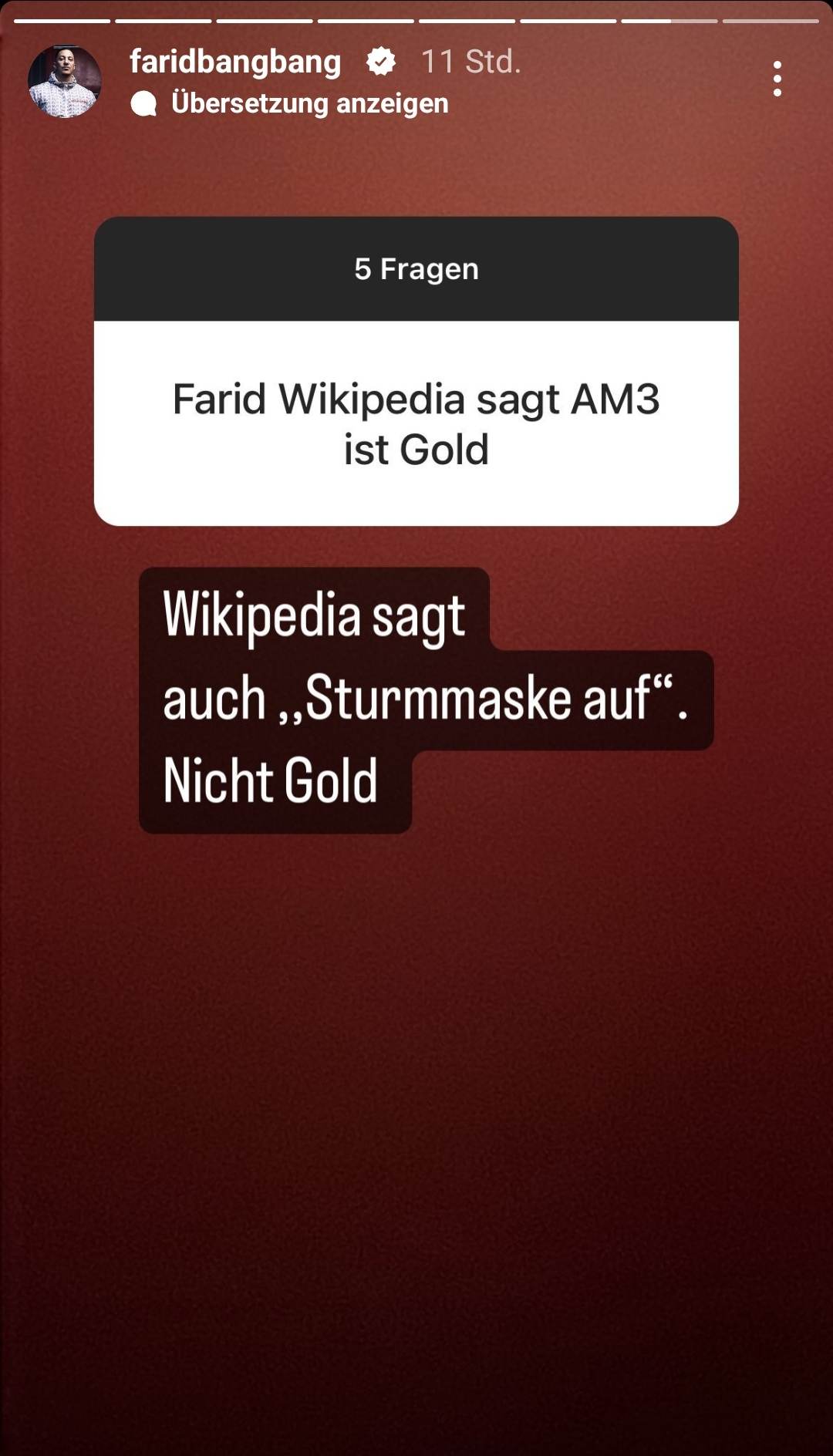 Farid stellt nun klar, dass dies noch nicht der Fall ist. Dafür hat aber „Sturmmaske auf“ den Goldstatus erreicht, obwohl es bei Wikipedia nicht steht.