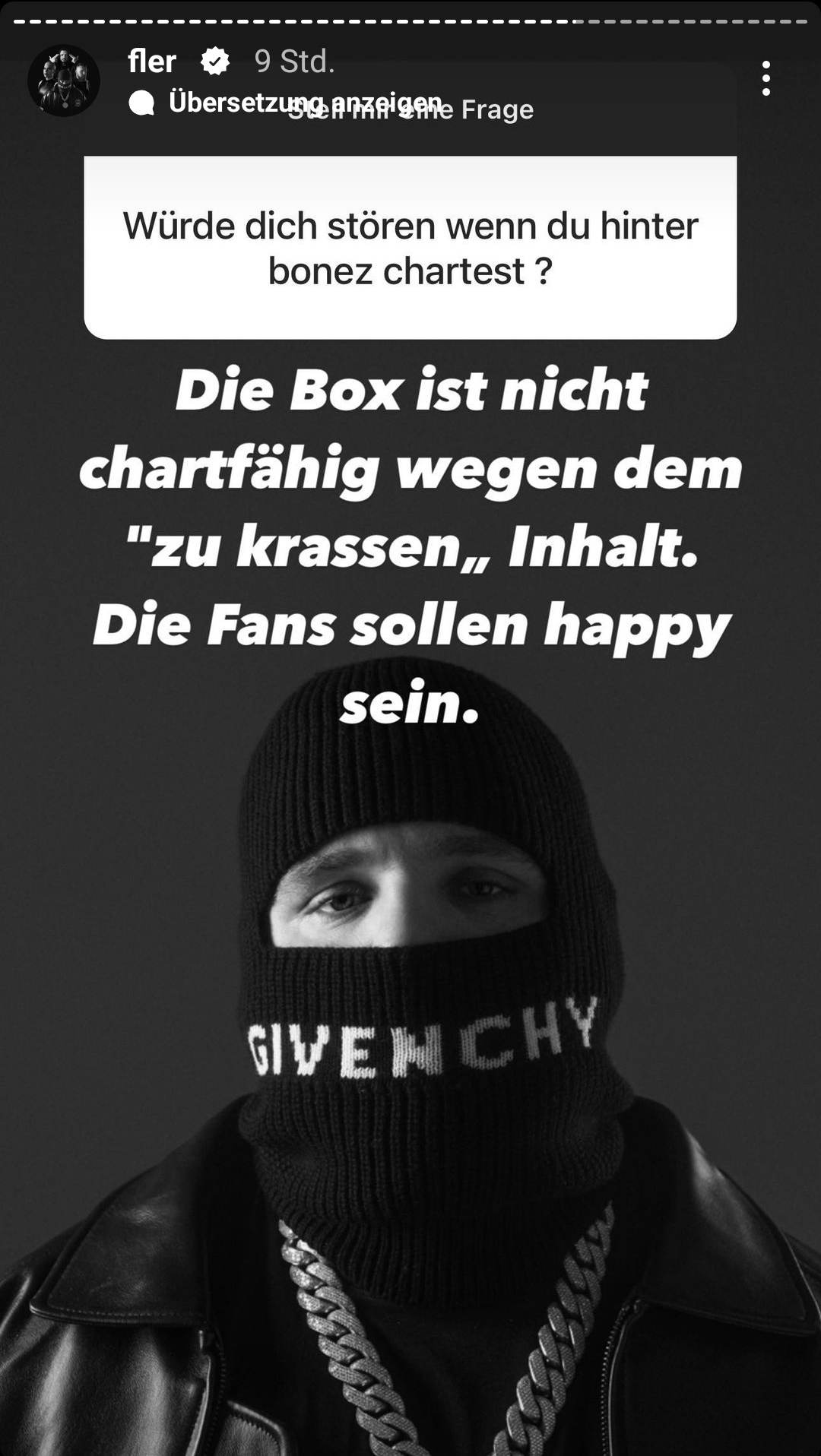 „Die Box ist nicht chartfähig wegen dem ‚zu krassen‘ Inhalt. Die Fans sollen happy sein“
