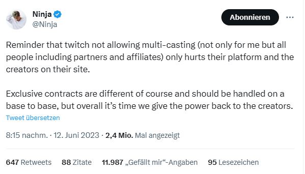 „Ich werde nicht vollzeit auf Twitch streamen. Nach der neuen Simulcast-Regel kann ich das einfach nicht. Es schadet den Creatorn“