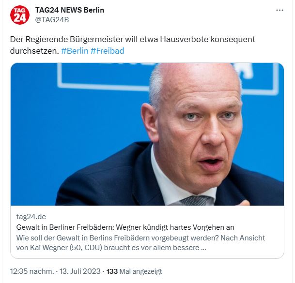 Zuvor war der CDU-Politiker bei einem Besuch im Berliner Prinzenbad. Dort gab es zuletzt neben dem Columbiabad besonders viele Fälle von Gewalt und Streit.