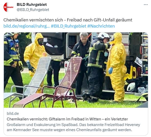 Da der Unfall in einem speziellen Raum passiert, können die Badegäste evakuiert werden, bevor giftige Dämpfe nach außen gelangen.