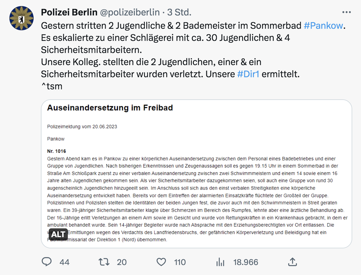 Gestern Mannheim, heute Berlin! Im Freibad des Stadtteils Pankow gerät eine Auseinandersetzung zwischen Jugendlichen und Bademeistern außer Kontrolle.