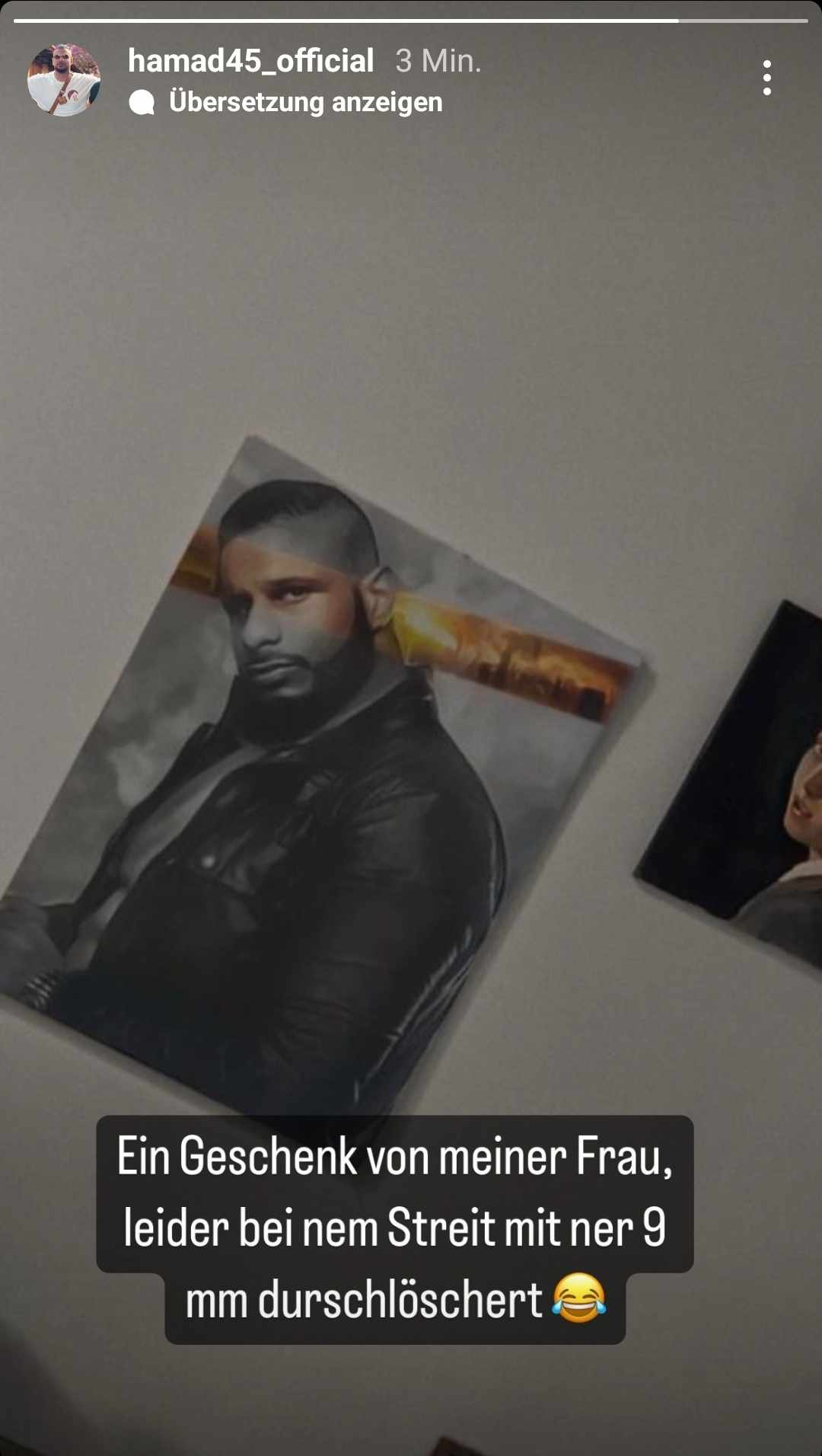 In seiner Instagram-Story zeigt der ehemalige Rapper Hamad45, dass seine Frau ihm ein Bild von sich selbst geschenkt hat.