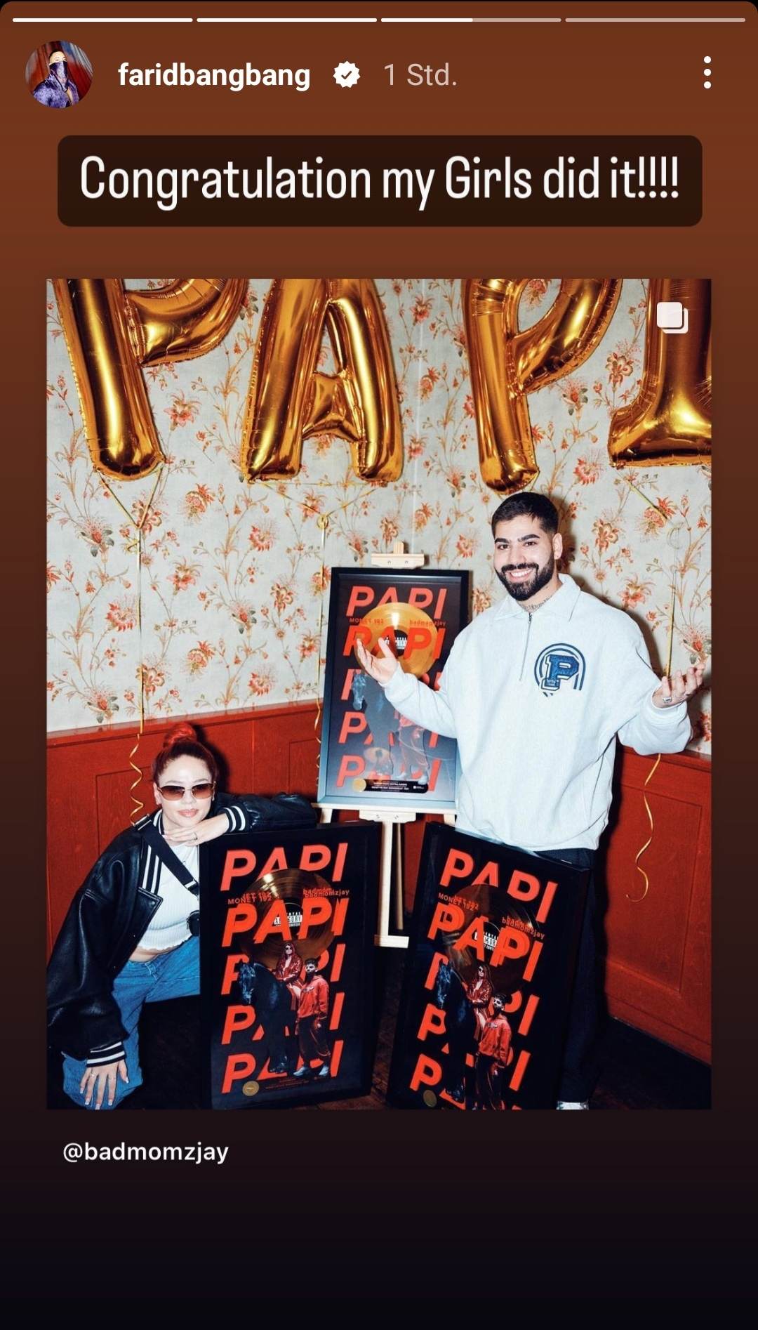 In seiner Instagram-Story teilt Farid das Bild von Badmomz und Monet und schreibt dazu: