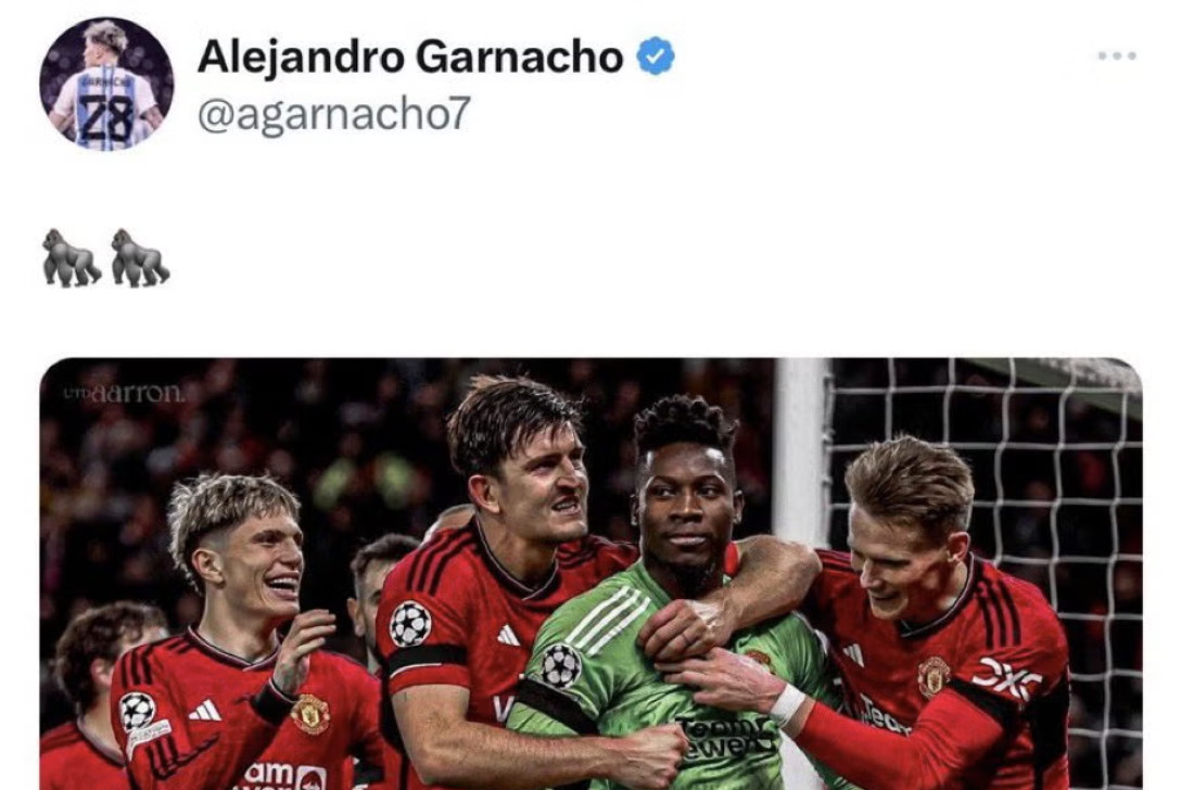 Onanas Kollege Garnacho postet nach dem Spiel ein Foto des Elfer-Jubels.