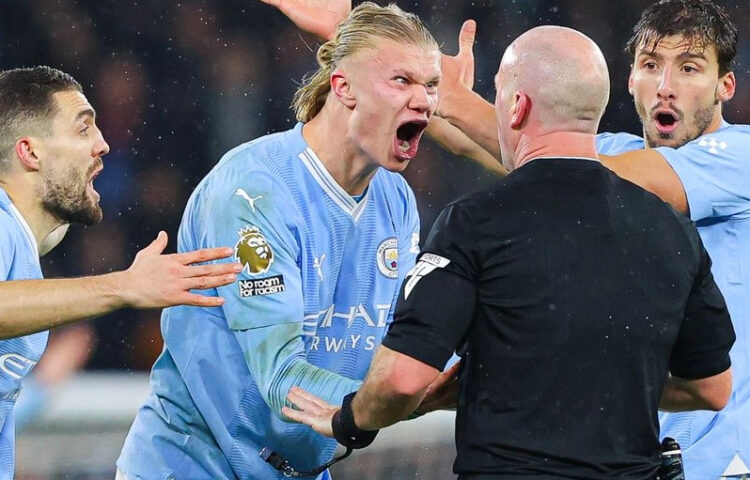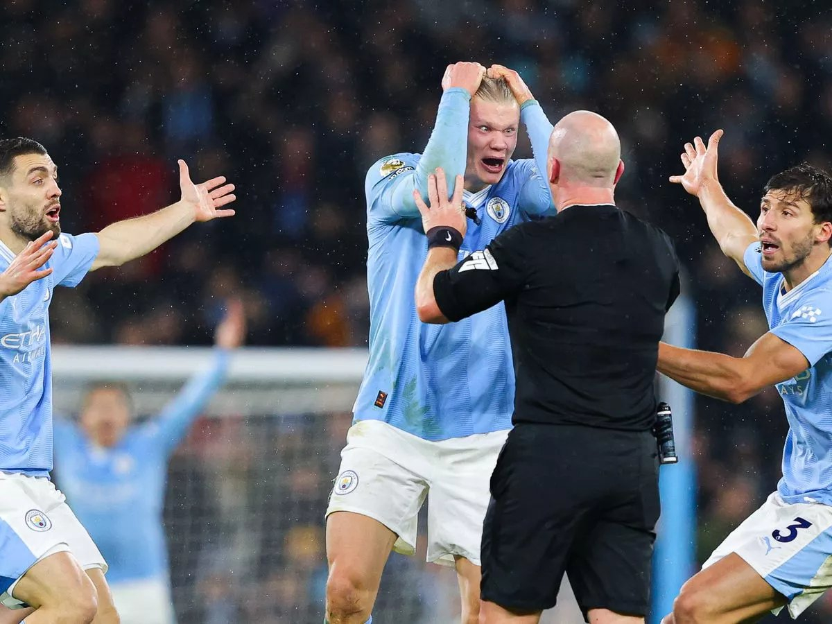 Der Norweger war außer sich, nachdem Hooper zunächst richtigerweise auf Vorteil entschied und dann doch noch eine hundertprozentige City-Chance abpfiff.