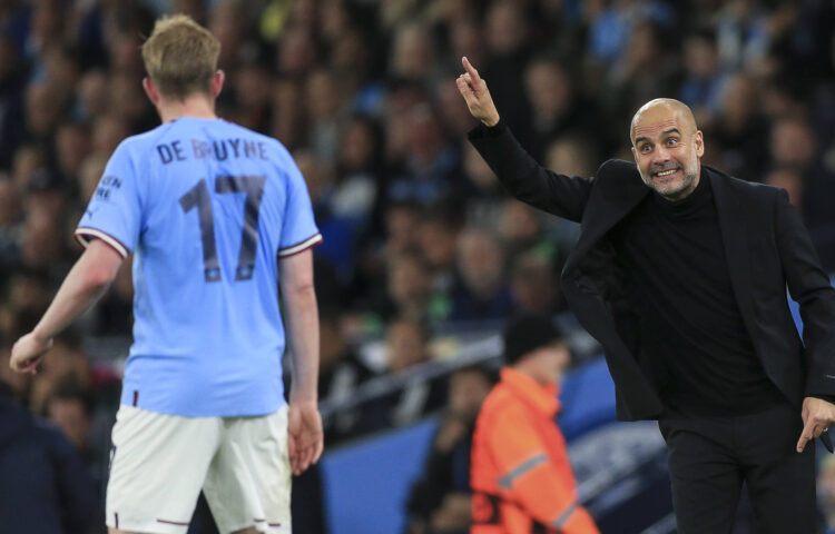 Laut RMC fordert der Katalane seinen Mittelfeldspieler auf, den Ball abzuspielen. Doch De Bruyne leistet sich einen Ballverlust.