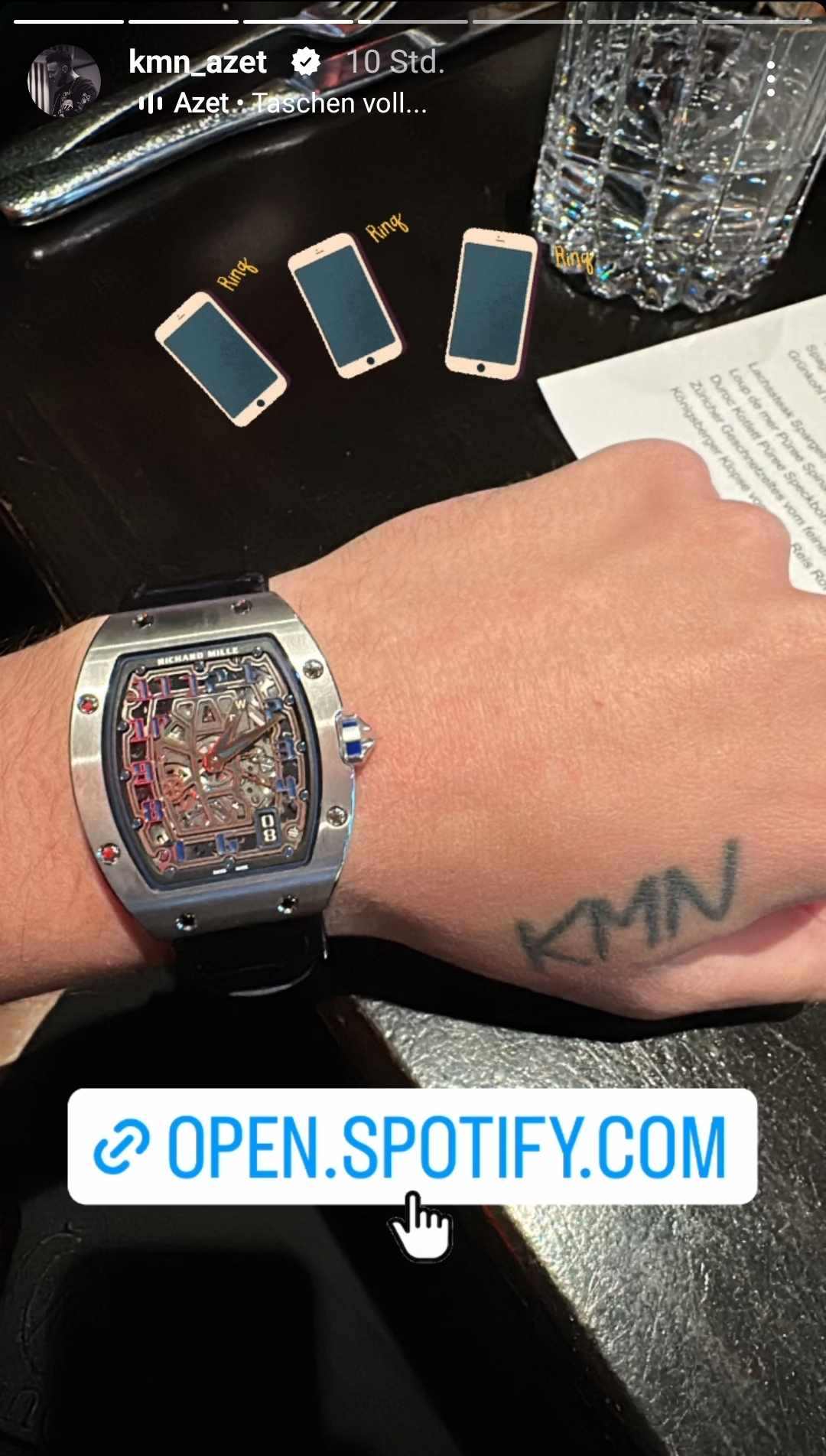 In seiner Instagram-Story zeigt sich der KMN-Star mit einer fetten Richard Mille-Uhr.