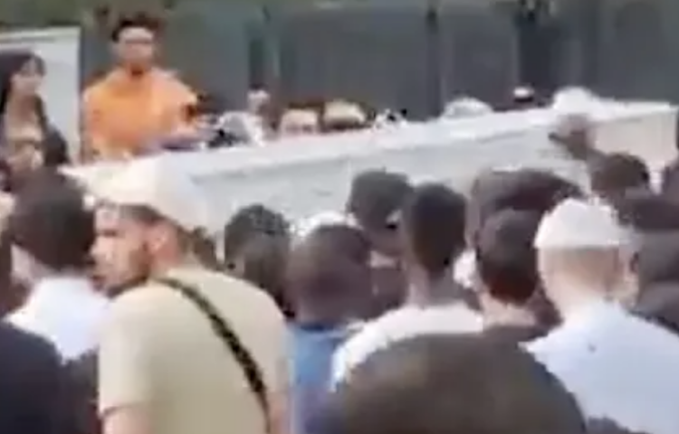 Ein Twitter-Video zeigt, wie der weiße Sarg des erschossenen Algeriers durch eine Menschenmenge getragen wird.
