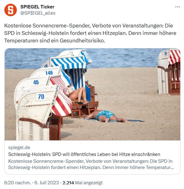 Die schleswig-holsteinische SPD will das ganze Land einschränken, wenn es zu heiß ist!