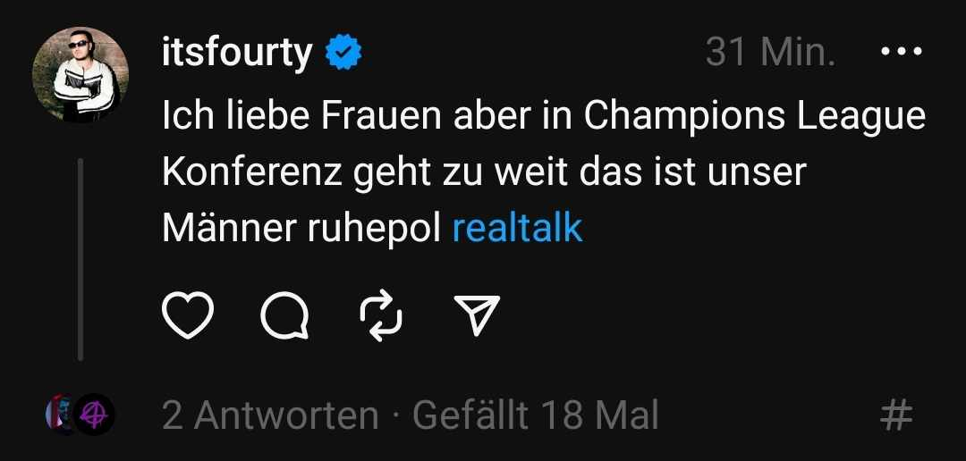 „Ich liebe Frauen, aber in der Champions League-Konferenz geht es zu weit. Das ist unser Männer-Ruhepol #Realtalk“