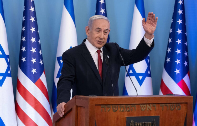 Premierminister Benjamin Netanjahu gibt zu Beginn der Sitzung des höchsten Sicherheitskabinetts eine Erklärung ab, in der er alle Bürger des Landes zur Einheit aufruft.