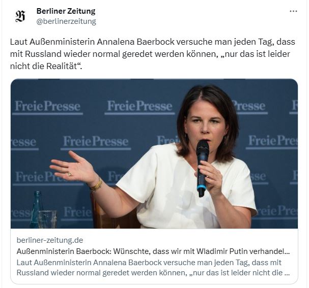 Überraschende Aussage von Außenministerin Annalena Baerbock. Sie würde gerne mit Wladimir Putin an einen Tisch, erklärt aber auch, warum sie das ausschließt.