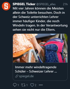 In unserem Nachbarland schlagen immer mehr Pädagogen alarm, weil Eltern ihre Kinder mit Windel zur Schule schicken.