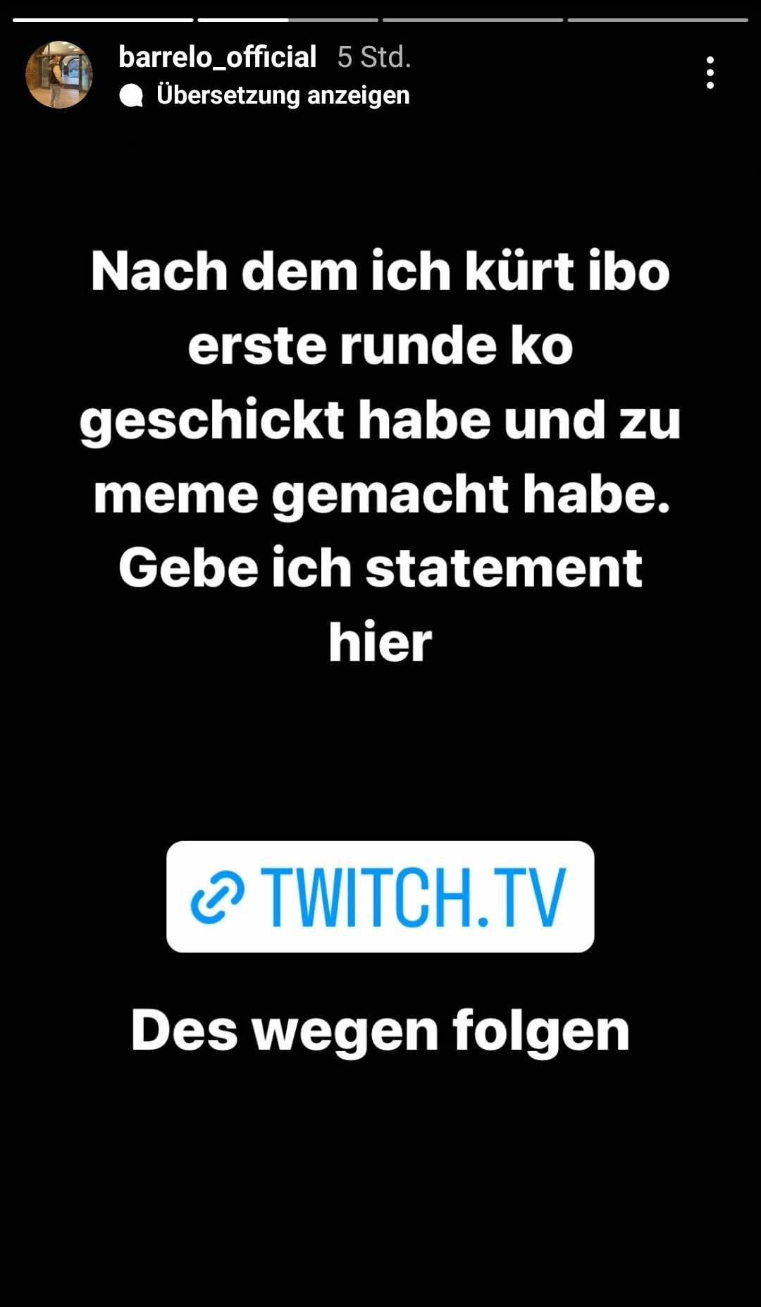 „Nachdem ich Kürt Ibo in der ersten Runde K.O geschickt habe und zu einem Meme gemacht habe, gebe ich mein Statement ab“