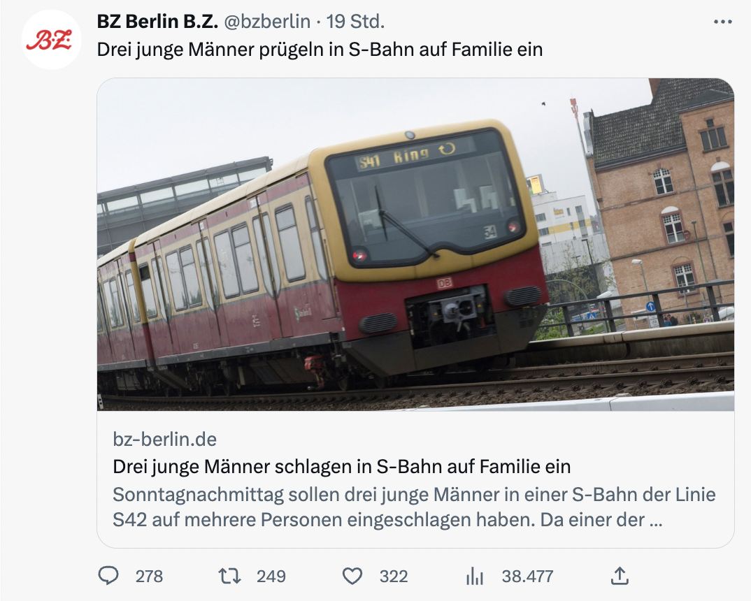 Schon wieder ein schrecklicher Vorfall von unnötiger Gewalt in der Öffentlichkeit. In einer Berliner S-Bahn geraten drei Jugendliche mit einer Familie aneinander und schlagen auf sie ein.