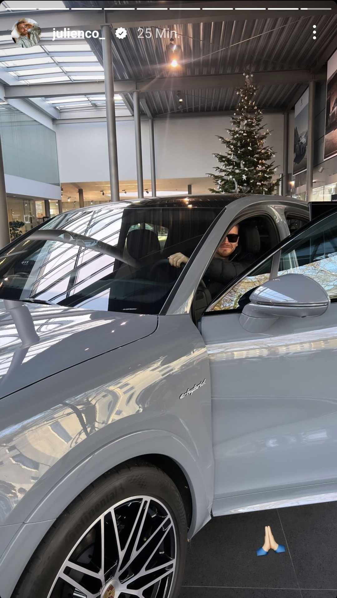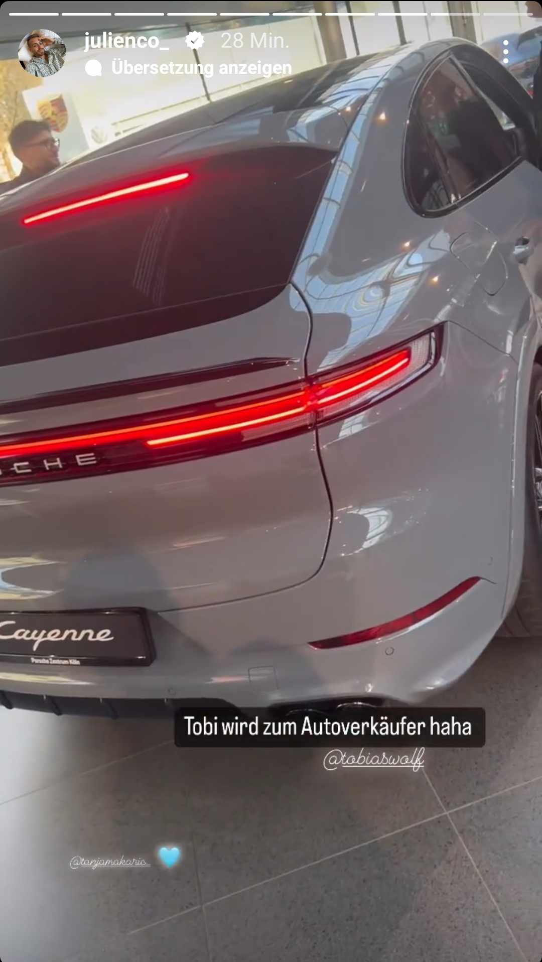 In seiner Instagram-Story zeigt der Influencer ein fettes Porsche Cayenne Coupe in Kreidegrau.