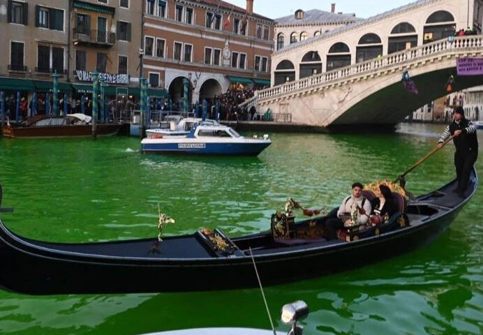 Mitglieder der Organisation „Extinction Rebellion“ färben Flüsse und Kanäle in Italien giftgrün.